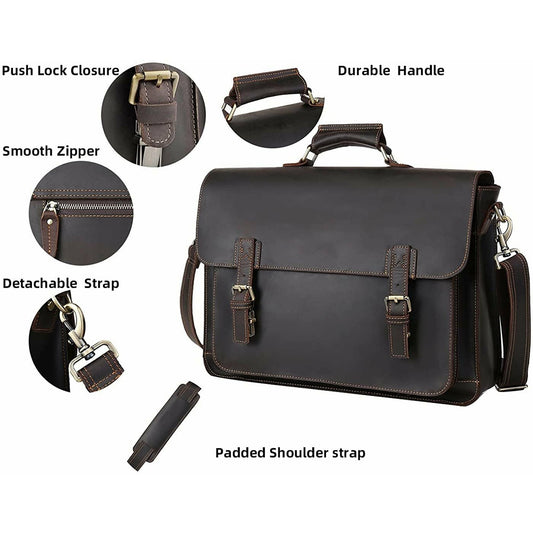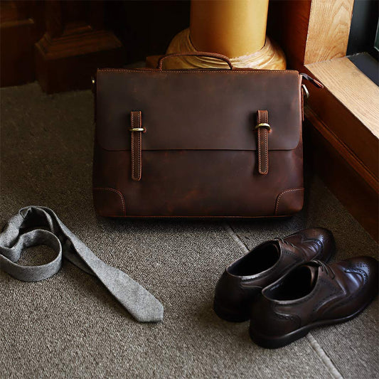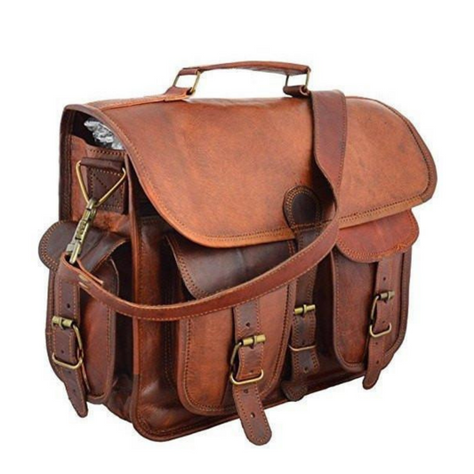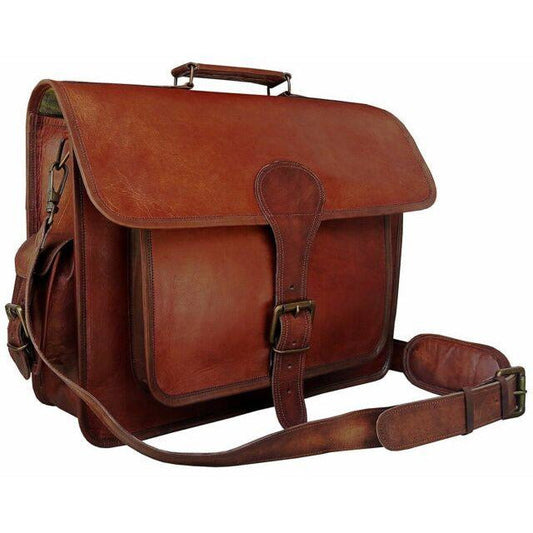 Retro Buffalo Hunter Leather Laptop Messenger Bag