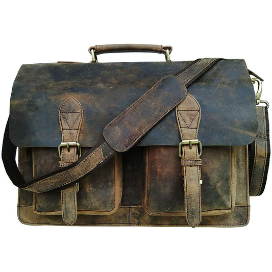 Retro Buffalo Hunter Leather Laptop Messenger Bag