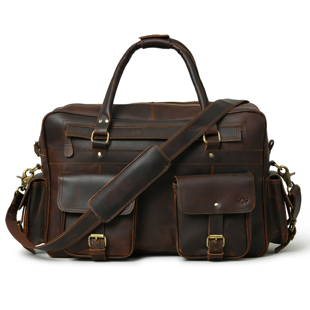 There are four exterior pockets so you can easily access your gear without opening the bag. With premium brass hardware, magnetic closures, and YKK zippers, your bag can keep up with your active lifestyle. The water buffalo leather used for this bag is top-grain, so you can be sure it will last a lifetime.